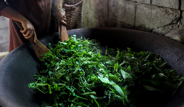 Çay yaprakları genel olarak dünyada 3 farklı şekilde toplanmakta. Elle toplama, makasla toplama yada makine ile toplama yapılabiliyor. Çin’de, Hindistan’da, Sri Lanka’da genel olarak yapraklar elle toplanıyor. Bu, üretilecek çayın cinsine ve özelliğine göre değişiyor. Bazı çaylar için sadece tomurcuk (örneğin Silver Needle), bazı çaylar için 1 yaprak 1 tomurcuk ya da 2 yaprak 1 tomurcuk şeklinde toplama yapılabiliyor. Elle toplama sırasında bitki daha kontrollü alındığı için özel üretimlerde bu yöntem vazgeçilmez bir unsur. Makasla toplama ülkemizde yaygın şekilde kullanılıyor. İstenen toplama örneğin Karadeniz Türk Siyah çayı için 2 yaprak 1 tomurcuk şeklinde. Bu şekilde elde edilen yapraklardan daha kaliteli ürün elde etmek mümkün.