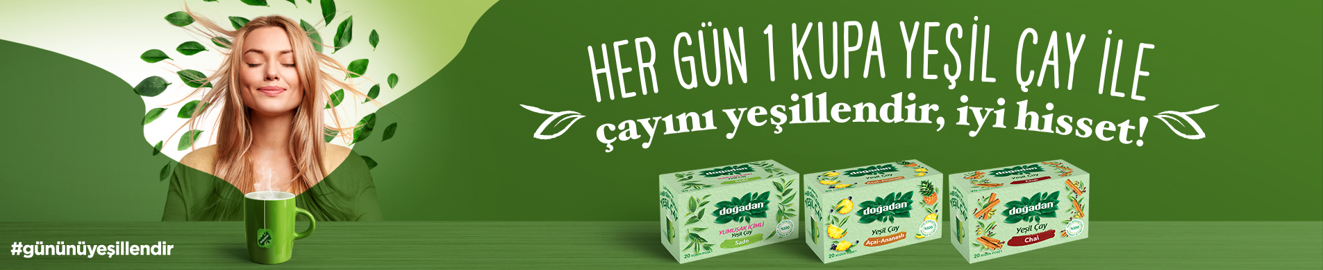 Doğadan’ın yeşil çayı sevdiren yeşil çay lezzetleri ile gününü yeşillendir! Her gün 1 kupa yeşil çay ile toplantını, çay keyfini, spor sonrasını, ara öğünleri, hatta cilt bakımını yeşillendirerek kendine iyi bak, iyi hisset!